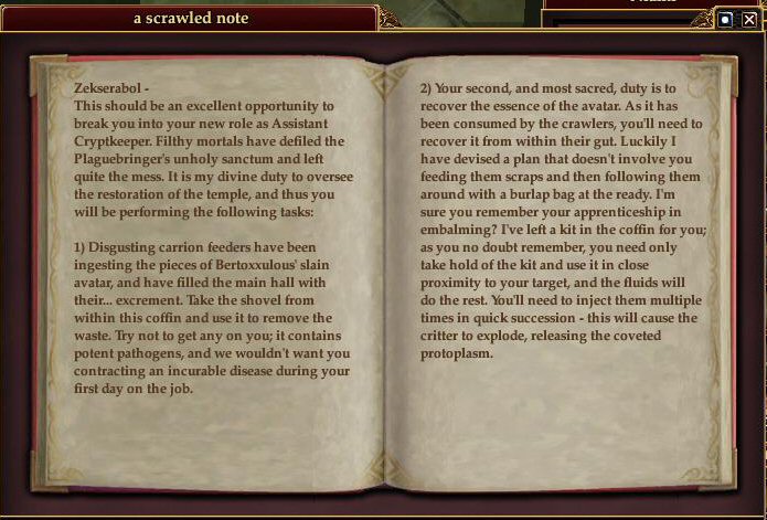 First off, a quick comment - I'd not recommend eating at the keyboard in the second part of this segment of the questline if you have a weak stomach. You'll see what I mean soon enough!